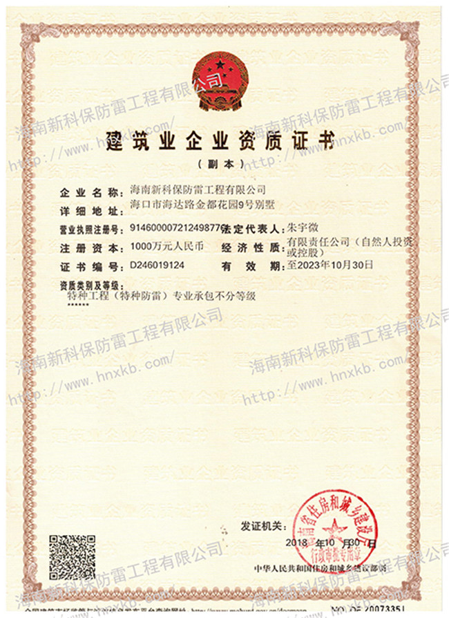 海南新科保防雷工程有限公司是一家集防雷技術(shù)研究、防雷檢測、防雷工程設(shè)計施工、安防監(jiān)控工程設(shè)計施工、建筑智能化施工、建筑水電施工于一體的高科技公司。在相關(guān)主管部門監(jiān)管下,致力于為客戶提供專業(yè)的安全防護(hù)、建筑智能化、水電技術(shù)等優(yōu)質(zhì)產(chǎn)品和工程服務(wù)。